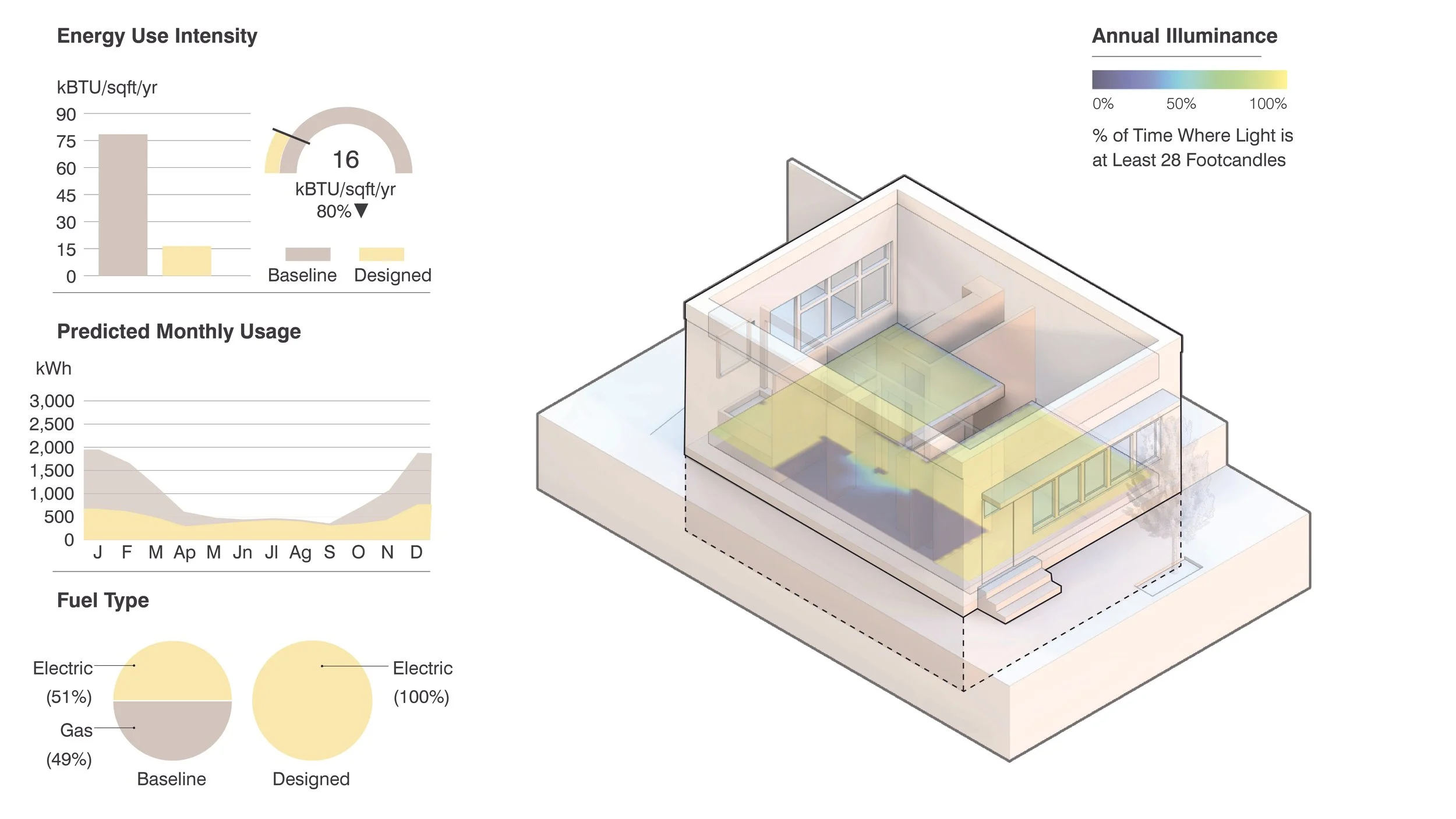 A recent Studio St. Germain project, the Wilkinsburg Residence, is a model of energy efficiency and a potential case study in how to check runaway costs. As the first single-family home in Pennsylvania to earn an EnerPHit certification, the Wilkinsburg Residence boasts an airtight envelope, thermal insulation, and triple-glazed windows. These elements combine to produce an EUI (Energy Use Intensity) of 16, which is 80% less than the established baseline figure. Designed to maximize natural light, the Wilkinsburg Residence also reduces electrical use—simply by virtue of its planning.